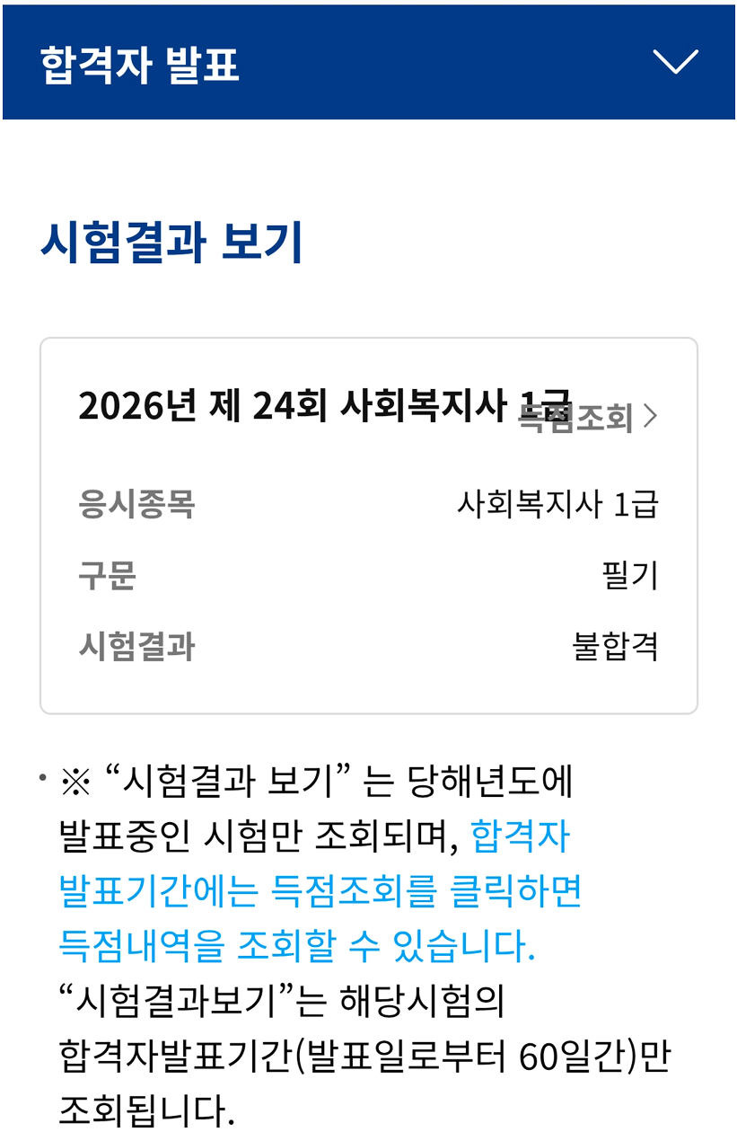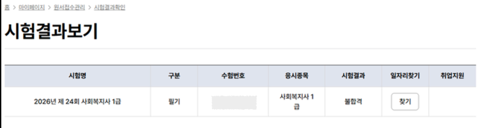 홈/마이페이지/원서접수관리/시험결과확인