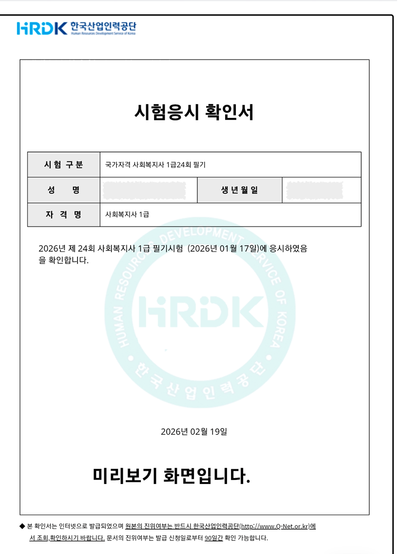 홈/확인서발급/확인서 발급신청/시험응시확인서